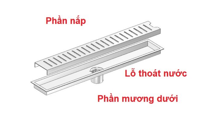 Cấu tạo của rãnh thoát nước inox về cơ bản sẽ gồm 2 phần: