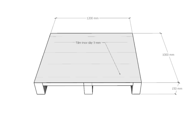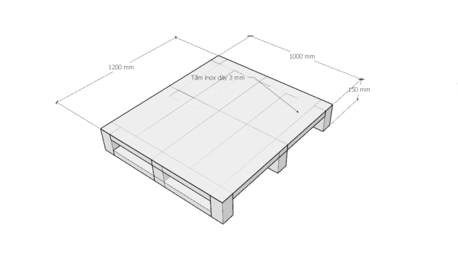 | Thông số kỹ thuật | Pallet inox 1200x1000x150 mm |